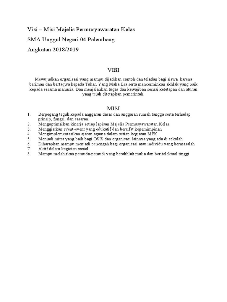 Visi Misi Menjadi Anggota Mpk - Contoh Visi Misi Dan Program Kerja Calon Ketua Osis : Pasal 6 organisasi ini bertujuan mempersiapkan siswa menjadi pemimpin penerus bangsa, guna:
